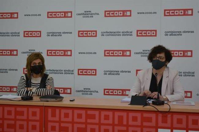 Comisiones Obreras ha emplazado a la Confederación de Empresarios de Castilla-La Mancha (Cecam) a abrir las mesas de negociación de los convenios colectivos y ha avisado de que no van a tolerar "que decaiga ningún convenio colectivo". Así lo han manifestado en rueda de prensa este lunes en Albacete, la secretaria regional de Acción Sindical y Formación Sindical de CCOO en la región, Carolina Vidal y la secretaria general de CCOO Albacete, Carmen Juste, antes de mantener un encuentro online con delegados sindicales de Comités de empresa de sectores esenciales en la provincia.