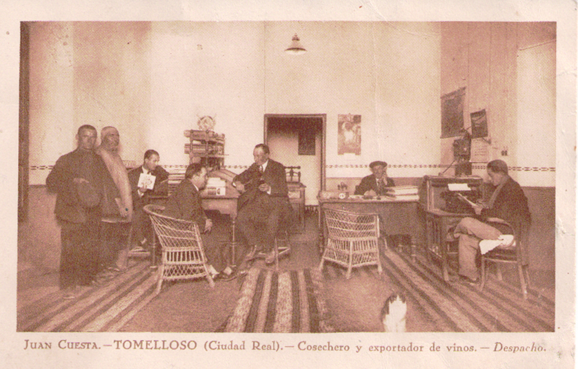 Para ilustrar el artículo usamos de nuevo una postal de la Bodega de Juan Cuesta en la que se puede observar el despacho de la misma en plena actividad.
