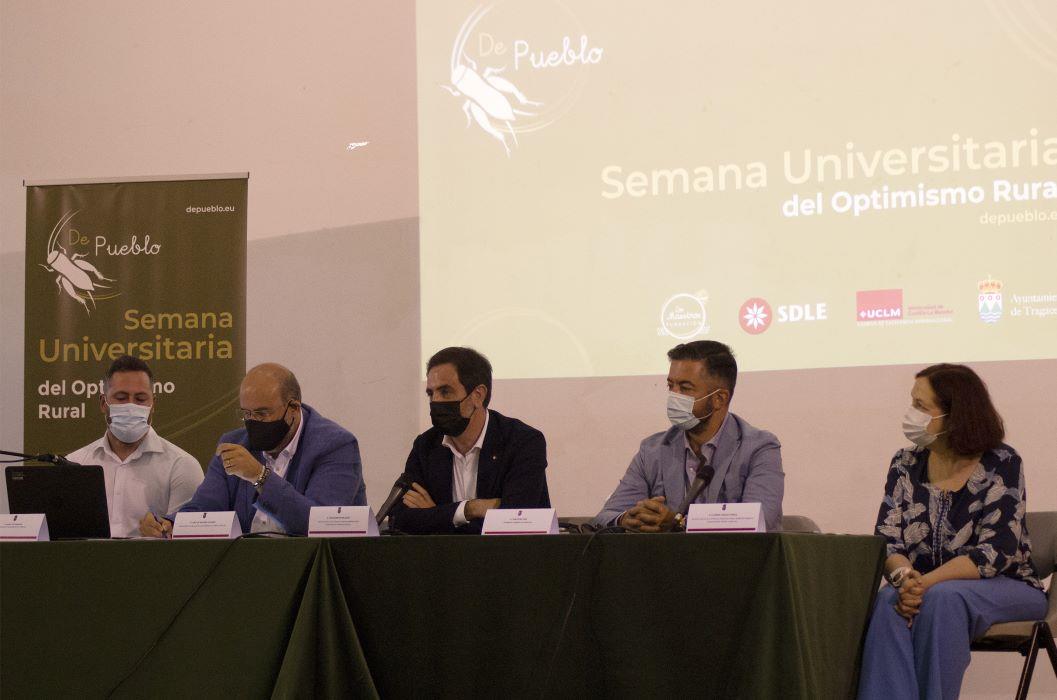 La I Semana del Optimismo Rural, que tendrá lugar hasta el próximo viernes en la localidad conquense de Tragacete, ha comenzado con la inauguración del curso de verano “Oportunidades del reto demográfico para la transición ecológica”. En la conferencia inaugural, el vicepresidente regional, José Luis Martínez Guijarro, ha destacado la toma de conciencia de toda la sociedad frente al problema de la despoblación y la cohesión regional. El vicepresidente de la Junta de Comunidades, ha manifestado que prefiere “el término de España Desaprovechada, porque hay que poner en valor las ventajas de mirar al mundo rural como espacio de oportunidades para desarrollar un proyecto personal y profesional”, considerando muy positiva la implicación de la universidad regional en proyectos como el “Erasmus Rural” o la realización de Cursos de Verano, como el que se ha presentado esta mañana.