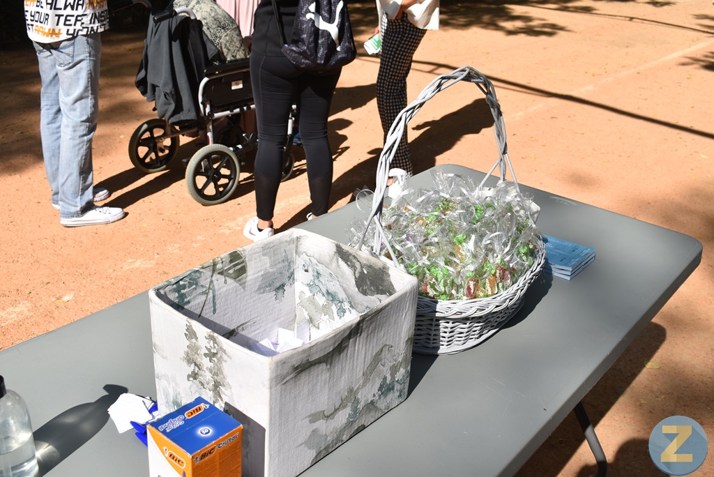 Justo al lado las mujeres se afanan con las agujas tejiendo prendas de abrigo y en el mostrador ya había un buen número. Algunas de ellas han traído los trabajos confeccionados en casa y otras realizan su labor en el parque. Mientras tanto, gente de todas las edades baila en la plazoleta del parque al ritmo que van marcando las monitoras. Para que no falte de nada, el día incluye el sorteo de una cesta.