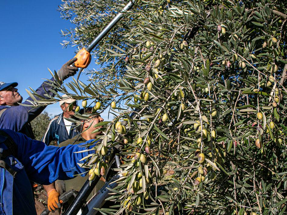 El agricultor destaca la sanidad del fruto, con apenas afección de la mosca del olivo y, por tanto, con «mucha calidad». Respecto a la recogida, celebra que esté mecanizada, ante la persistente «falta de mano de obra». Recoge la aceituna en plantación convencional con el paraguas y la espaldadera, con la vendimiadora.