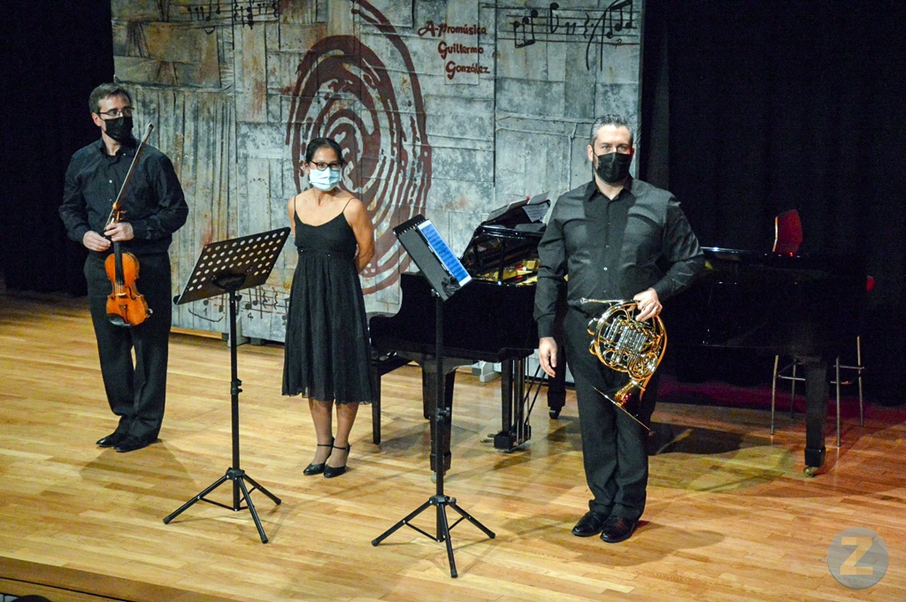 Trio de Brahms lo forman, Antonio Plata a la trompa; Bruno Vidal Moreno al violín y