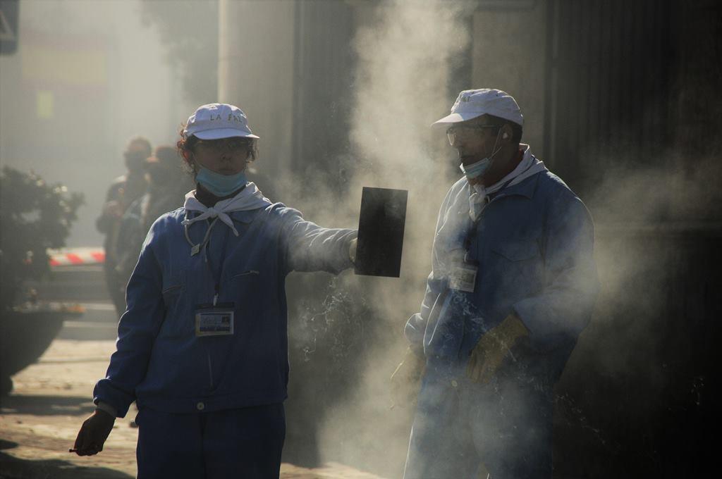 el estruendo asolador de los 24.000 cohetes, que hacen vibrar literalmente toda