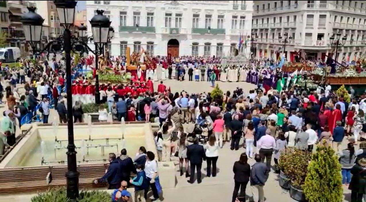 Espectacular final de la procesión Camino del Calvario en la plaza de España