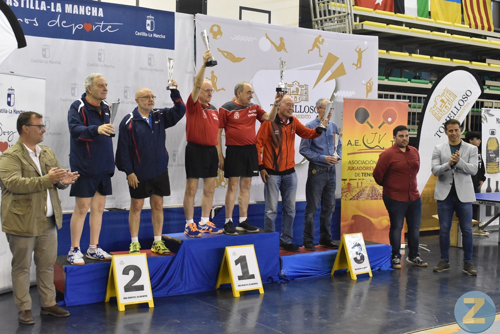 Del 29 de abril al 2 de mayo, el pabellón de la Ciudad Deportiva de Tomelloso ha albergado el Campeonato de España de Tenis de Mesa de Veteranos. Cuatro jornadas inolvidables en las que han participado 450 jugadores procedentes de todas las comunidades autónomas del país. Tomelloso ha despedido este lunes el torneo con una nueva entrega de trofeos en la que han estado presentes los presidentes de la Federación nacional y regional; el directo general de deportes de Castilla-La Mancha, Carlos Yuste; el responsable de Deporte de la Junta en Ciudad Real, Luis García Morato y el concejal, Amadeo Treviño. Jugadores, técnicos y público en general han destacado la gran organización de un campeonato que ha tenido un efecto muy positivo para el sector hostelero de Tomelloso y comarca.