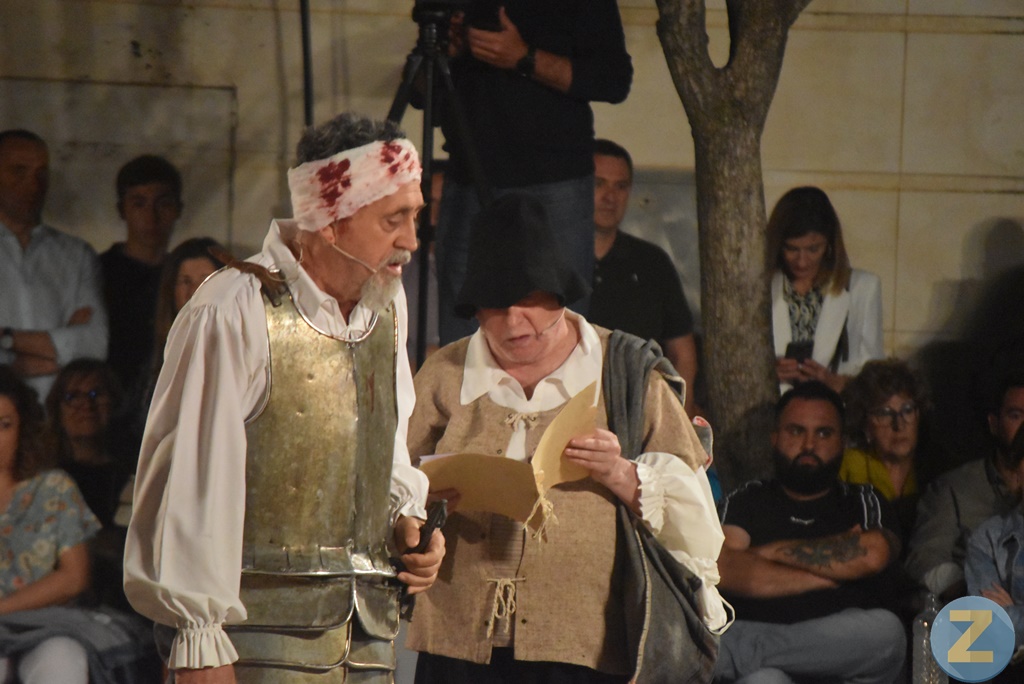Pilar Serrano y Tiquitoc Teatro han visto recompensado su gran esfuerzo de preparación y organización con otro magnífico Quijote en la Calle que ha tenido como actores principales a José Luis Fernández Serrano (Don Quijote) y Pedro Serrano Ocaña (Sancho) bien acompañados por Luis Miguel Serrano (señor Vivaldo), Manoli López de la Vieja (señora Vivaldo), Antonio López de la Vieja (Ambrosio) y Sandra Carrasco (Marcela), además de otros actores que han encarnado a los Frailes de San Benito, el Caballero del Yelmo de Oro, el sabio Merlín, los personajes de las Bodas de Camacho, Durandarte o Ruidera y sus hijos.