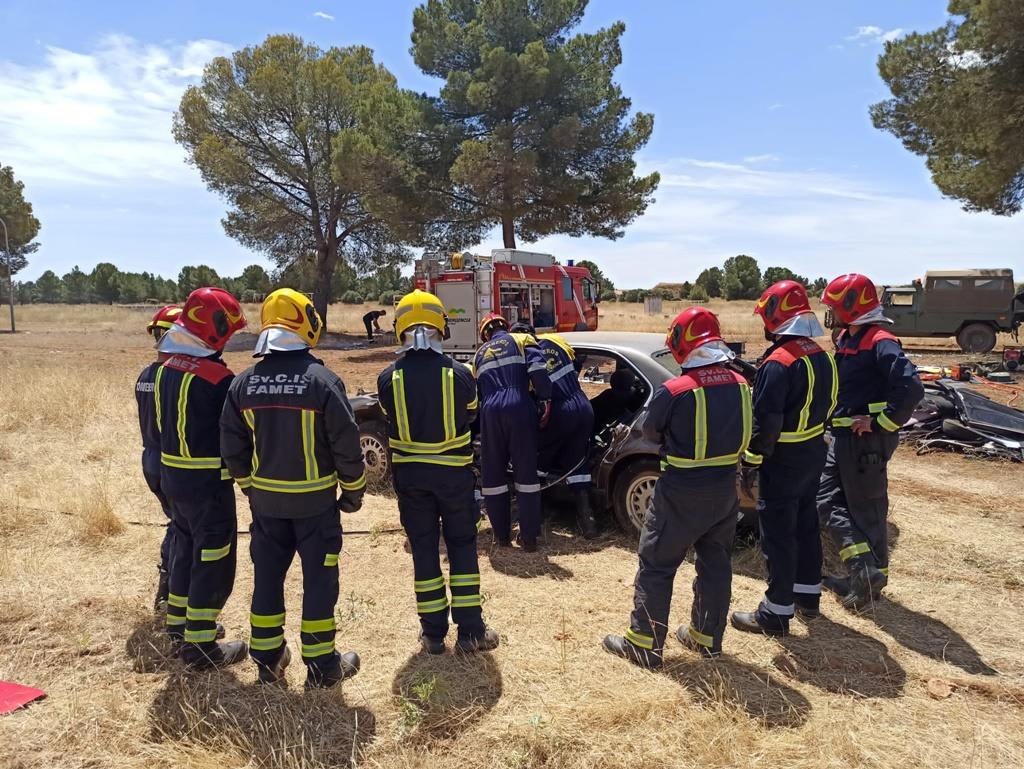 Bomberos del SCIS y militares de la Base de Almagro realizan una práctica conjunta de rescate en vehículos