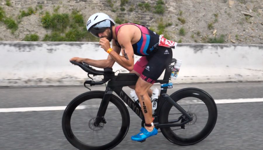 La forma en la que va en bici, realmente respetando las distancias, en la mayor medida posible, algo que sin duda es raro en gente que mismamente las semanas anteriores corría super sprint. También rompe moldes con un look propio; mono de corta distancia, sin mangas aero, barba, ese anillo en la nariz y el pañuelo de Rambo de Tomelloso en carrera a pie. Y otros aspecto curioso: la manera de ir nutriéndose en competición, lo ha tenido claro parece desde la segunda competición, es fundamental seguir unas pautas, en número de carbohidratos/hora