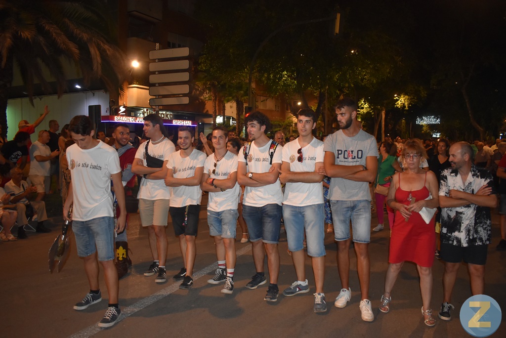 Por el bando cristiano han marchado Contrabandistas, Almogávares —con un tomellosero en una de sus escuadras—, Templarios, Cides y Guerreros. Beduinos, Tuareg, Chumberos y Piratas lo han hecho por el lado moro. Las comparsas han desfilado con marchas moras o cristianas, salvo Contrabandistas que lo han hecho con pasodobles.