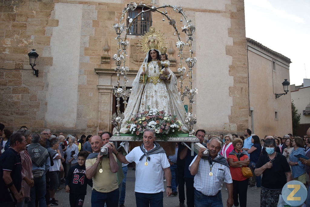 Nada más salir, en el cruce de calle Socuéllamos con Juan José Rodrigo, la imagen de la Patrona se ha girado para despedir a Encarna Ramírez, benefactora de la Virgen, que saludaba emocionada desde la ventana de su casa. El camino ha seguido por la calle Socuéllamos y la avenida Virgen de las Viñas con muchos vecinos despidiendo a la Patrona desde las puertas y balcones. Los vivas a la Virgen y su niñete, pronunciados con fervor y mucho sentimiento, han sido frecuentes durante todo el recorrido.