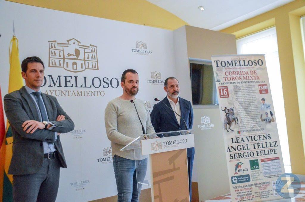 El empresario, Ángel Luis Ortiz, ha confesado que “la corrida se está preparando con mucha ilusión y es bueno que destine fondos a la Asociación Españaola de Esclerosis Lateral Amiotrófica y Adelante CLM que están haciendo un trabajo inmenso a favor de las personas afectadas por una enfermedad terrible”. Entrando en lo puramente taurino, Ortiz ha destacado “un cartel puntero en el que vamos a contar con una primera figura del rejoneo, Lea Vicens, que está en las primeras del escalafón y que no ha sido nada fácil su contratación. También con Ángel Téllez, triunfador en la pasada feria de San Isidro y eso son palabras mayores y finalmente con un novillero muy prometedor que tomará la alternativa este año, Sergio Felipe, que supone rendir honores al escalafón menor y que ya han visto torear en Tomelloso”.
