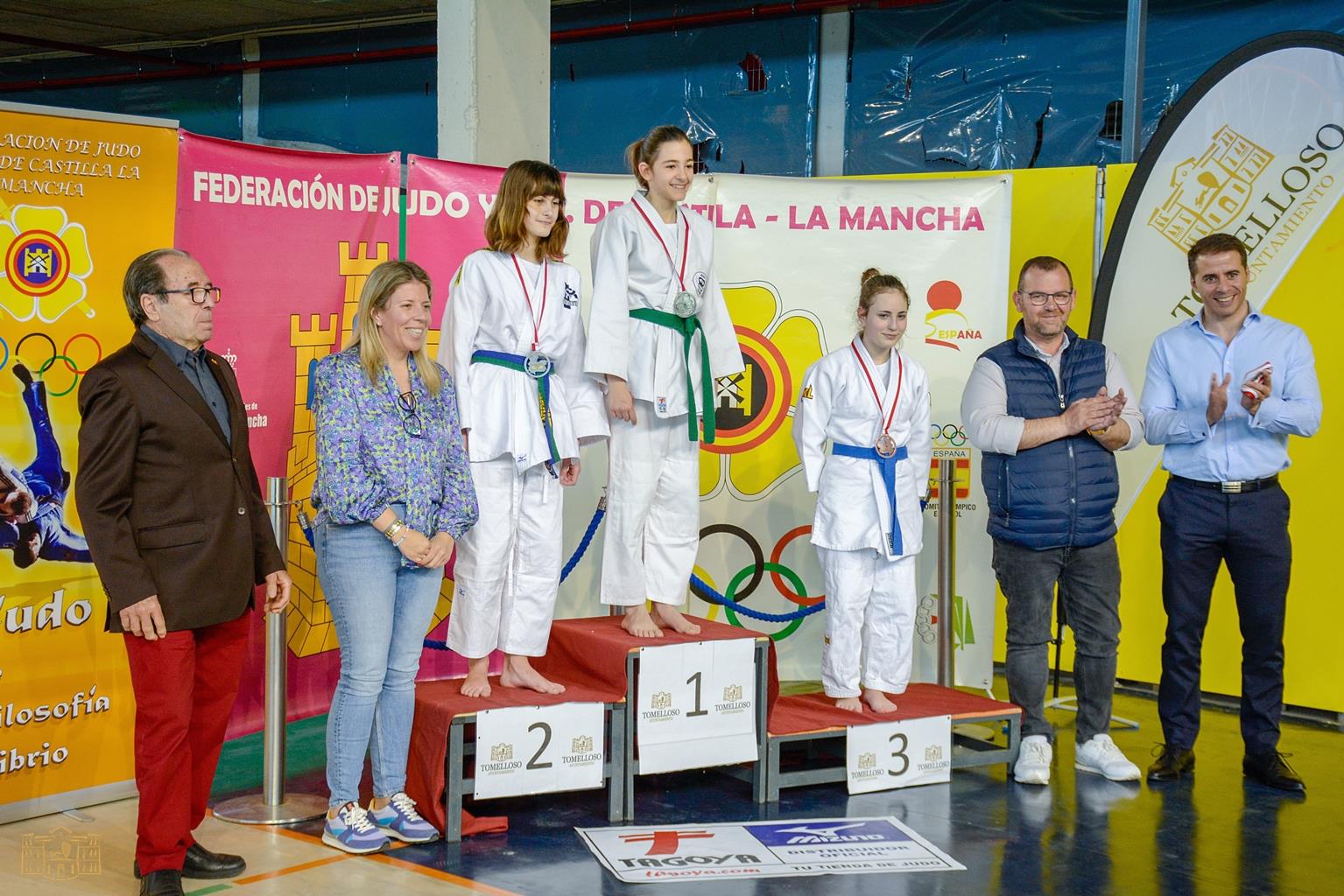 La alcaldesa de Tomelloso, Inmaculada Jiménez; el Director General de Deporte, Carlos Yuste y el concejal de Deporte, Amadeo Treviño, participaron en la ceremonia de entrega de premios celebrada a la finalización de los combates. Inmaculada Jiménez, aprovechó su presencia para felicitar al Club de Judo Tomelloso por la excelente organización y el gran ambiente deportivo que se vivió durante toda la mañana, así como a la Federación de Judo de Castilla-La Mancha por confiar una vez más en esta ciudad para celebrar un evento de ámbito regional.