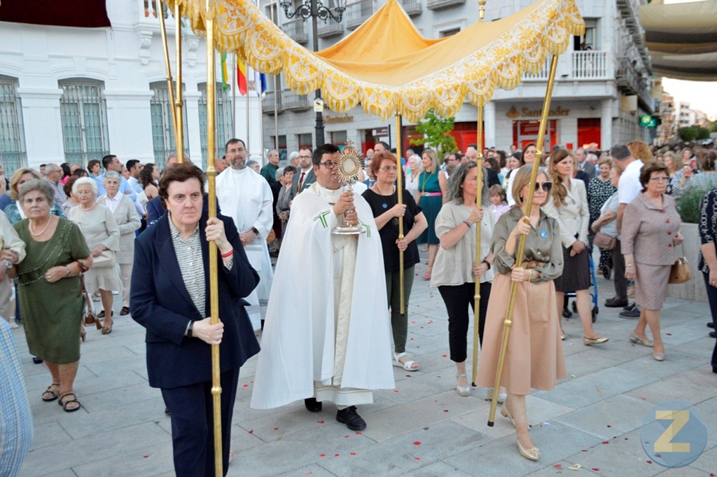 Tomelloso ha celebrado este domingo la festividad del Corpus Christi, en una tarde prácticamente veraniega los vecinos y vecinas se han echado a la calle para seguir la procesión del Santísimo con un recorrido novedoso. El cortejo ha partido de la parroquia de Nuestra Señora de Los Ángeles transitando por las calles Montesinos, Dulcinea, Reverendo Padre Pedro, Socuéllamos y plaza de España para acabar en la parroquia de la Asunción.