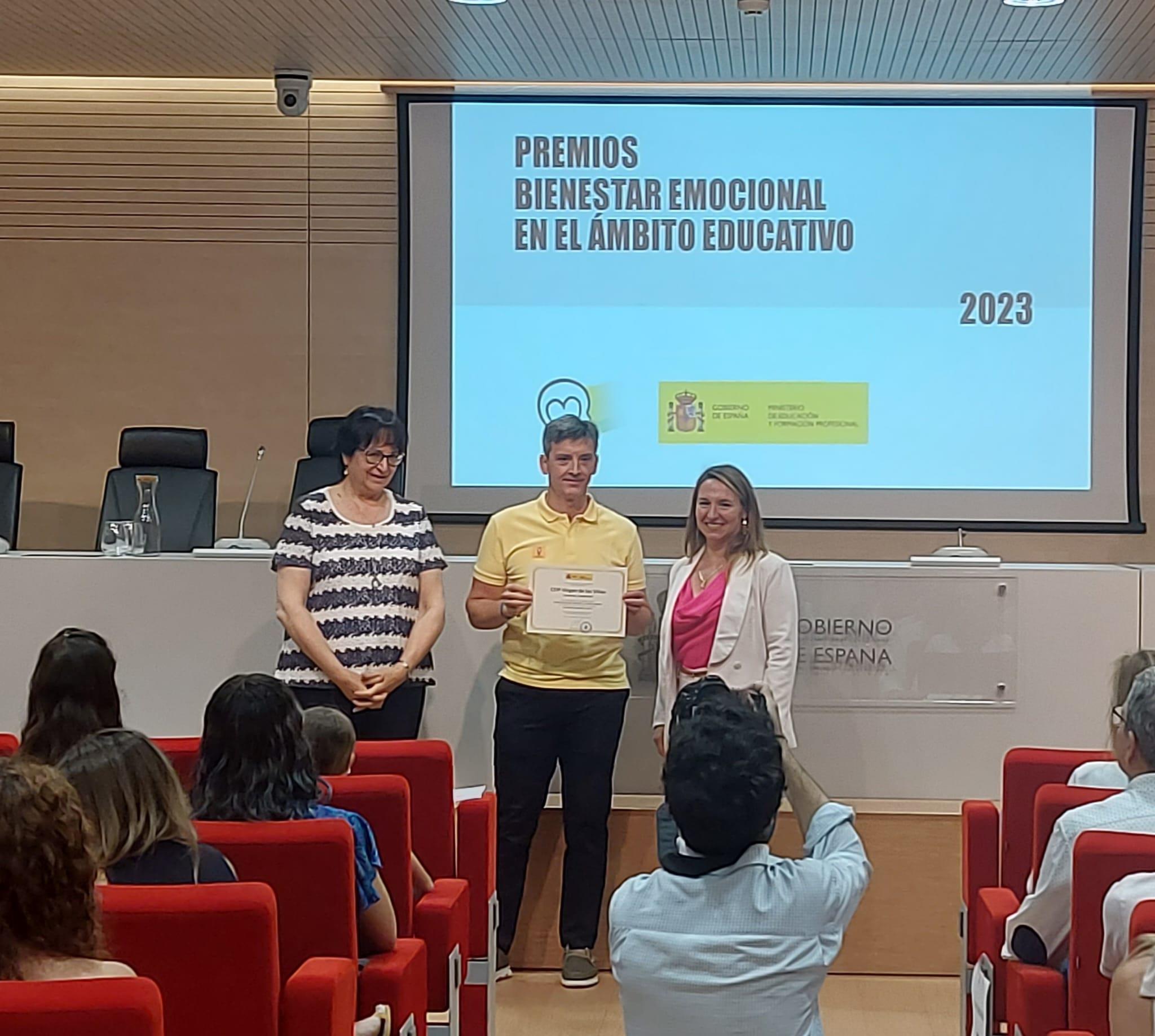 El director del colegio Virgen de las Viñas, Carlos de la Calle Aragón, recogió el galardón de manos de la directora general de Evaluación y Cooperación Territorial. A los premios han concurrido trescientos proyectos de centros educativos de todo el territorio español, de los cuales fueron seleccionados 15 en la Modalidad A que corresponde a los centros de infantil y primaria, y otros 15 en la modalidad B destinada a centros de secundaria y Formación Profesional.