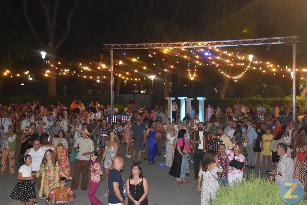 En el parque, Marcos Galván calentó el ambiente y poco a poco la pista se fue llenando y Adrián Osuna hizo su primera incursión por Frank Sinatra, más adelante cautivaría al respetable también con Raphael, Julio Iglesias y Tom Jones. A la una y media subió al escenario Maestronic que ofreció durante más de una hora un repertorio de números conocidos por todos que se bailaban y cantaban con ganas. Los criptanenses tienen un buen directo y durante algo más de una hora tocaron conocidos temas de la época. Después se fueron alternando Adrián Osuna y Marcos Galván, éste pinchando temas de los 60 y 70 y aquel desplegando su show, haciendo las delicias del respetable que tenía ganas de fiesta. Un grupo de los Canutthi hizo una buena imitación de Los Bravos, con El Cuqui llevando la voz cantante, mientras que otros subieron al escenario encarnados en los Village People.