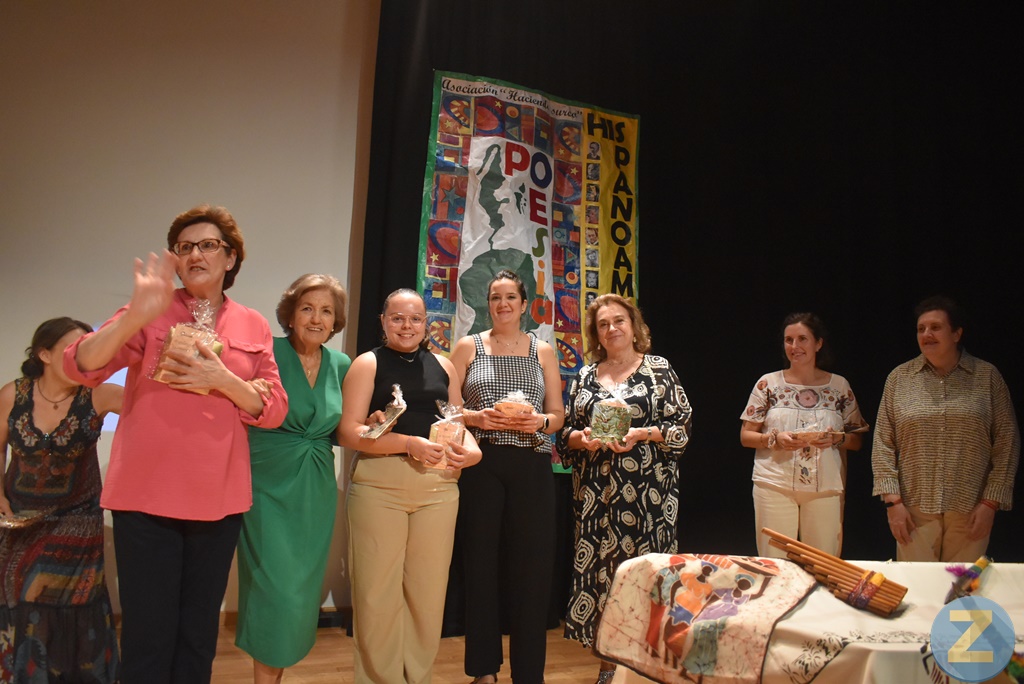 Y a gran altura ha estado la parte literaria con las intervenciones de Rocío Torres, Noelia, Esther de Paz y Pilarín que han ofrecido semblanzas y bellos pasajes de las obra de las escritoras Juana de Ibarbourou, Alfonsina Storni, Gabriela Mistral, Delmira Agustini y Sor Angelines de la Cruz, además de una entrañable interpretación con voces de niños que provocaría un largo aplauso del respetable. Ya fueran retazos de poesía o prosa, todas las mujeres que han leído lo han hecho con temple, pausa y mucho sentimiento, y de este modo el público ha podido acercarse mucho más a la obra de estas grandes literatas. En la pantalla aparecían sus rostros en grandes dimensiones, lo que también ha contribuido al lucimiento del encuentro.