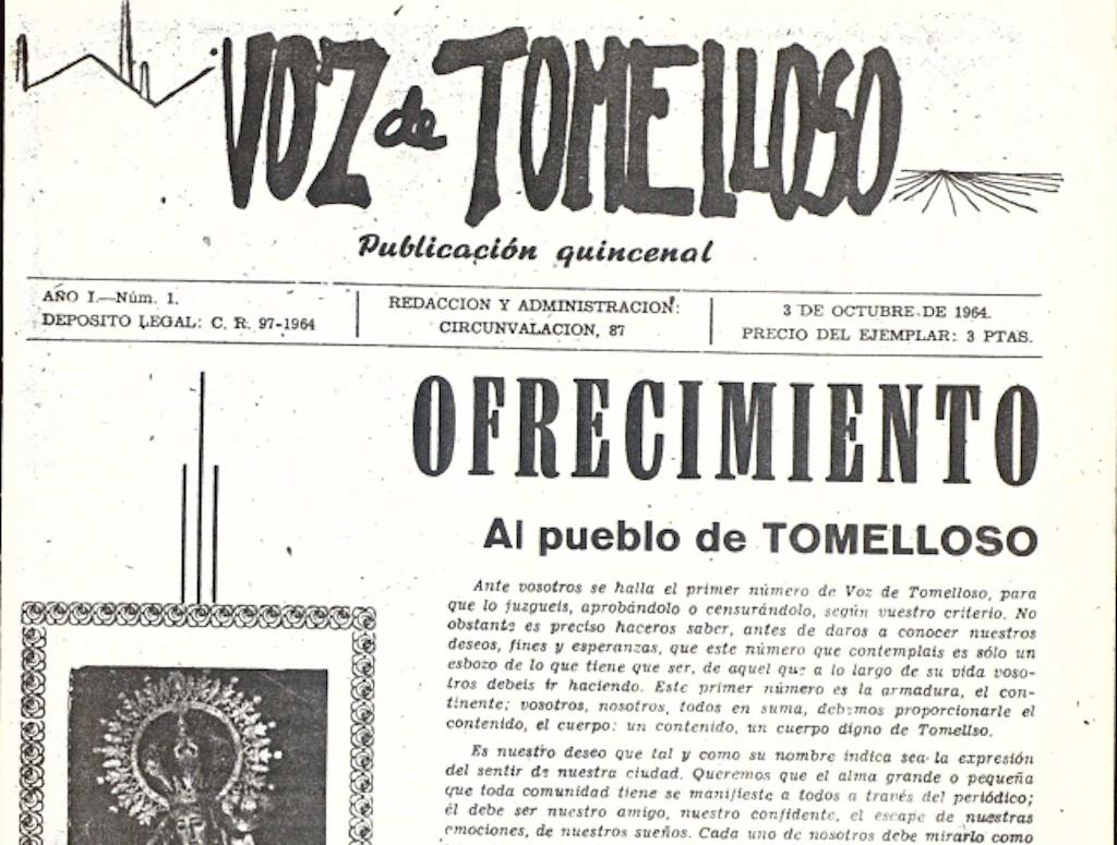El 3 de octubre de 1964 salió a la calle el primer número  Voz de Tomelloso, el periódico creado por Clemente Cuesta que alargaría su andadura hasta 1967. Tenía su sede en el Paseo de Circunvalación, fue de periodicidad quincenal y se vendía al precio de 3 pesetas. En  el editorial de su puesto de largo marcaba  su línea e intenciones. “Es nuestro deseo que, tal y como su nombre indica, sea el sentir de nuestra ciudad. Queremos que el alma grande o pequeña que toda comunidad tiene, se manifieste a todos a través del periódico; él debe ser nuestro amigo, nuestro confidente, el escape de nuestra emociones, de nuestros sueños”.