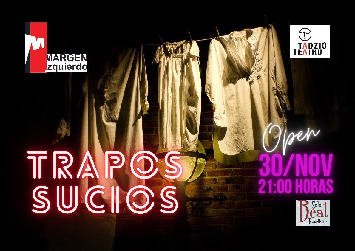 El próximo jueves 30 de Noviembre, en la Sala Beat de Tomelloso, Margen Izquierdo os sacará a la luz sus Trapos Sucios, su lado más íntimo y desconocido, hará un acto de striptease sin quitarse la ropa, más bien al contrario, poniéndosela.
