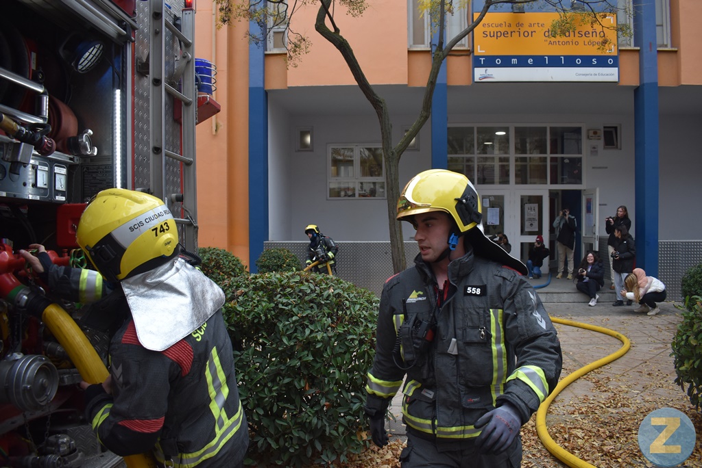 En la mañana de este martes ha tenido lugar un simulacro de incendios en la Escuela de Arte y Superior de Diseño Antonio López. La directora del centro, Marisol Angulo, ha explicado que la Escuela, desde su departamento de Prevención de Riesgos Laborales, y el cuerpo de Bomberos de Tomelloso colaborarán en un proyecto que se lleva a cabo desde el ciclo de Fotografía. El acuerdo incluye un proyecto de fotografía artístico para que se pueda promocionar el Cuerpo de Bomberos de Tomelloso y en el que participarán dos bomberas que trabajan en la provincia.