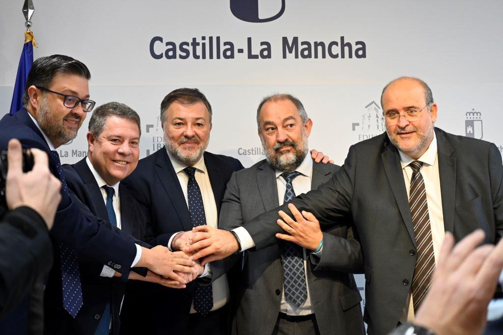Así lo ha explicado el rector, Julián Garde, tras rubricar el documento junto al presidente de la Junta de Comunidades de Castilla-La Mancha, Emiliano García-Page; y el alcalde de Cuenca, Darío Dolz. El máximo responsable de la UCLM se ha felicitado por los resultados de la cooperación entre distintas administraciones y la institución académica, que se ha materializado en iniciativas como el Urban Forest Innovation Lab (UFIL) o el Centro de Estudios Penitenciarios, ambos radicadas en Cuenca. En este sentido, Garde avanzó que la Universidad de Castilla-La Mancha va a presentar su candidatura para que el campus conquense se convierta en sede de las próximas Jornadas de Investigación de CRUE Conferencia de Rectores de las Universidades Españolas, que se celebrarán en noviembre de 2024, y cuya sectorial preside en la actualidad el propio rector de la UCLM.