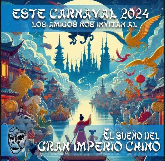 En el Carnaval de este año, la Peña Los Amigos nos transportará al gran imperio y mágico mundo de China. Sus componentes realizarán un viaje a este maravilloso mundo de grandes guerreros, emperatrices y emperadores y otros reconocibles iconos de la magia y encanto que encierra el gigantesco país oriental. Una celebración llena de color, música y tradición con la que esperan convencer a ese público fiel que siempre agradece su trabajo.