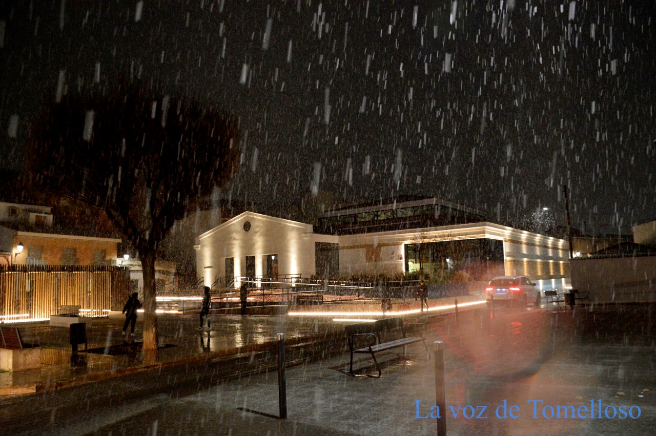 Una copiosa nevada ha sorprendido a los tomelloseros en este primer sábado de marzo. Pasadas las 8 y media de la tarde, la nieve se ha hecho presente en la ciudad con una intensa precipitación de grandes copos. En las calles con menos tráfico un manto blanco, muy fino, claro, cubre la calzada.