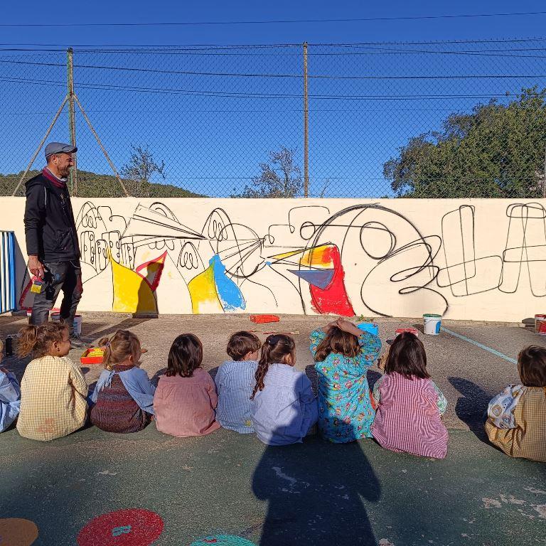plasmar sus ideas para la realización de la obra que ocupa una pared del patio