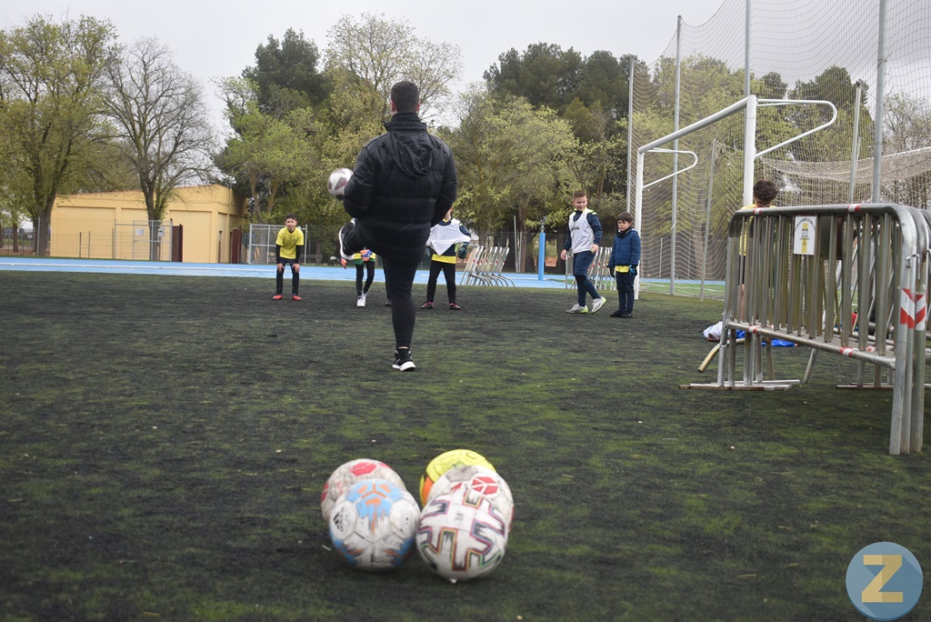 Doscientos cincuenta niños asisten al Campus de Semana Santa que ha organizado la Escuela de Fútbol Base de Tomelloso. Atendidos por dieciocho monitores, coordinador por Juli Espinosa, los pequeños futbolistas aprenden los fundamentos técnicos y tácticos del juego a base de entrenamientos muy divertidos, con ejercicios y juegos que suelen concluir con partidos . El campus empezó este lunes y se alargará hasta mañana miércoles en los tres campos de la Ciudad Deportiva y una pista de fútbol-sala.