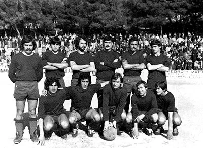 En la foto, que no es de excesiva calidad, aparecen, de pie: Paco, Ángelm Carlos Moya ,Juanito, Alemán y Losa. Agachados: Casiano, Paco, Lerma, Moni y Nino.