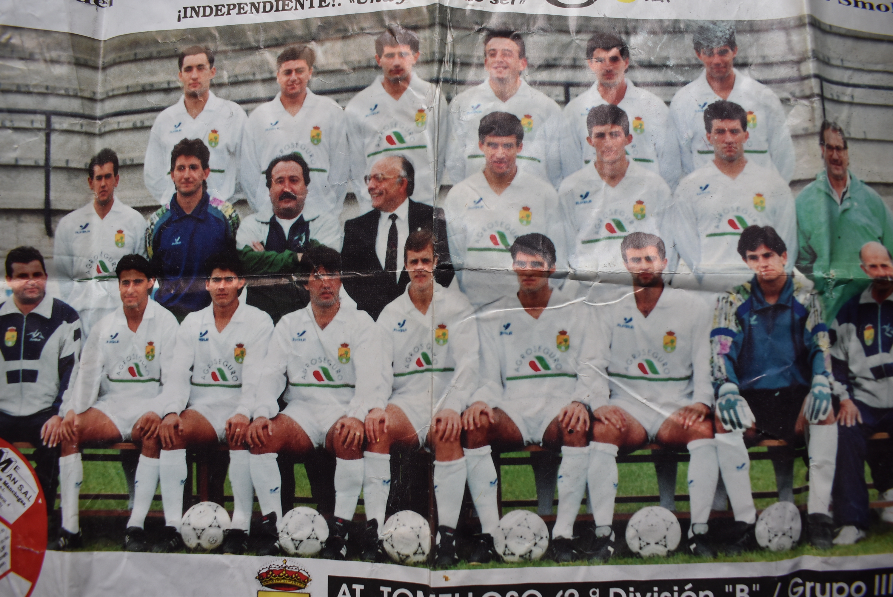 La foto de este poster enseña la histórica plantilla del Atlético Tomelloso de la temporada 91-92 que compitó en el grupo III de Segunda B y que consiguió la gesta de eliminar a un histórico del fútbol español como el Celta de Vigo. En este inolvidable equipo podemos ver a Santi Verdú, Treviño, Octavio, Ariño, Navarrete, Climent, Óscar, Rey, Juan Carlos Rodrígez (entrenador), Vicente García (presidente), Osa, Navarro, Bolós, Roberto Solares (preparador físico), Marcelino (utillero), Salva, Manolo, De las Heras, Echarri, Llorens, Nené, Montoya y Martín (Utillero).