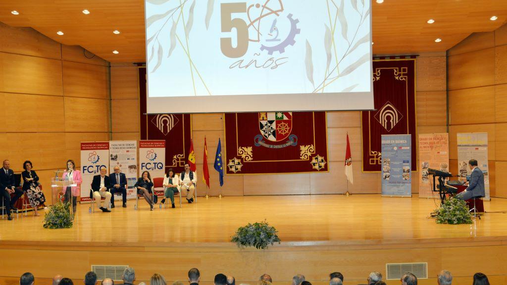 Para festejar estos cincuenta años de vida, la Facultad de Ciencias y Tecnologías Químicas del Campus de Ciudad Real ha celebrado hoy en el Paraninfo Luis Arroyo de Ciudad Real un acto de agradecimiento, reconocimiento y recuerdo en el que, de la mano de profesores, estudiantes y decanos, ha viajado a sus orígenes para mostrar cómo fueron sus comienzos, cómo ha sido su evolución, cuál ha sido su contribución a la sociedad y cómo afronta su futuro.