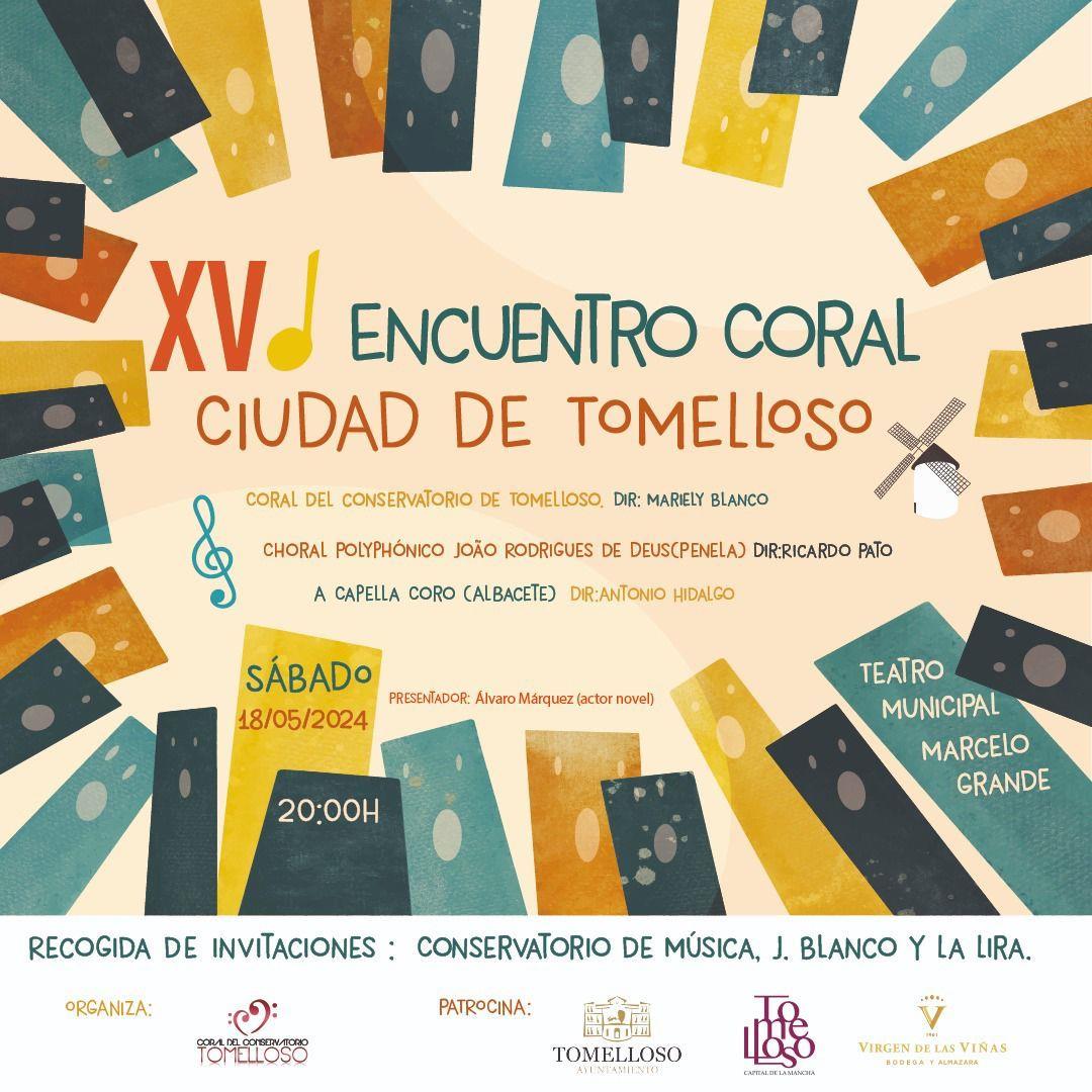 El Teatro Municipal Marcelo Grande va a acoger el próximo 18 de mayo el XVI Encuentro Coral “Ciudad de Tomelloso”. Un relevante acontecimiento musical, organizado por la Coral del Conservatorio de Tomelloso, con la colaboración del Ayuntamiento, en el que se pone de manifiesto la unión que crea la música.