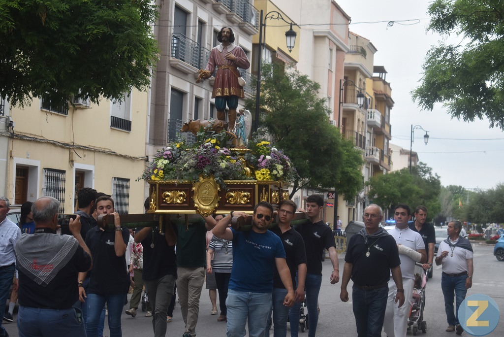 Este domingo se ha producido el traslado de la imagen de San Isidro desde su Ermita hasta la Iglesia de La Asunción de Nuestra Señora. Portada en andas por el grupo de la Hermandad, la imagen de San Isidro ha salido a las siete de su Ermita para tomar la carretera de Pedro Muñoz, la avenida de la Virgen de las Viñas, la calle Socuéllamos y la Plaza de España.