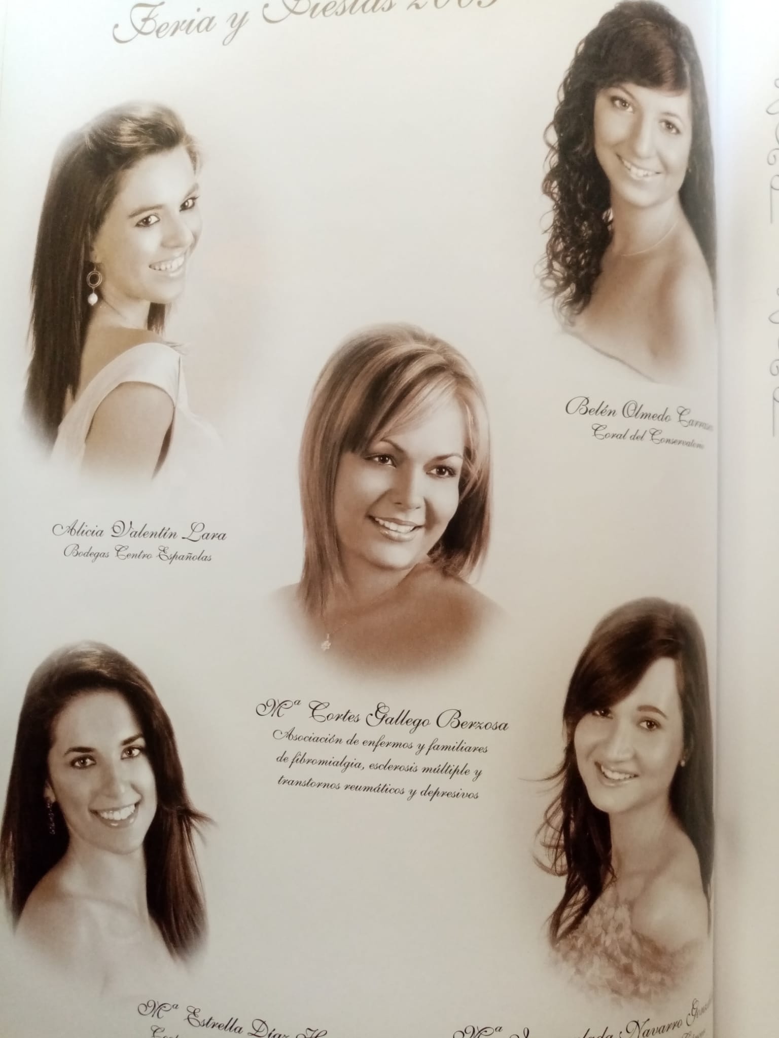 Hace quince años Tomelloso celebró sus ferias y fiestas. Carlos Cotillas estaba en el ecuador de su tercer mandato y fueron madrinas: Alicia Valentín Lara, presentada por Bodegas Centro Españolas; Belén Olmedo Carrasco, por la Coral del Conservatoria; Mª Cortes Gallego Berzosa, que representaba a la Asociación de Enfermos y Familiares de fibromialgia; Estrella Díaz Heredia, por la cooperativa Virgen de las Viñas e Inmaculada Navarro González, por la Asociación Española contra el Cáncer.