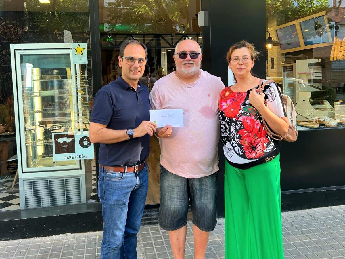 La entrega del donativo tuvo lugar en las instalaciones de Panaderos Artesanos J. Sánchez, contando con la presencia de María José López (en representación de J. Sánchez), Bernabé Blanco (Gerente de AFAS) y Alejandro Ramírez (Presidente de la Hermandad de la Virgen de las Viñas).