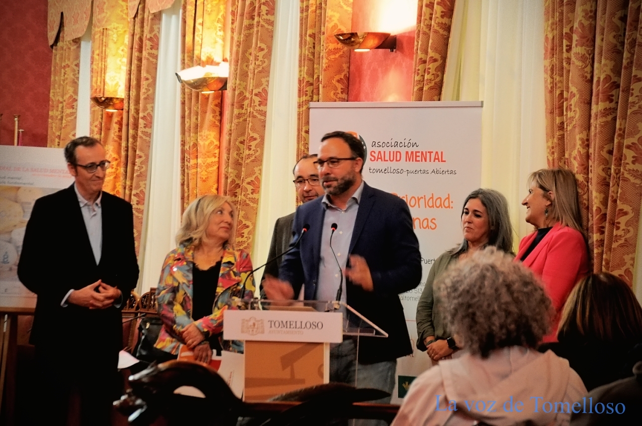 La presidenta de Puertas Abiertas, Mari Carmen Navarro, ha conducido el acto en el que han participado Gerónimo Parra y el alcalde de Tomelloso, Javier Navarro, que han leído un manifiesto elaborado por la Confederación de Salud Mental de España. La Asociación Musical Santa Cecilia ha participado en la celebración interpretando dos piezas, el Himno a la Música y “Hallelujah”, de Leonard Cohen. El salón de plenos se ha llenado con representantes de distintas asociaciones relacionadas con la salud mental; han participado en la conmemoración los concejales del equipo de gobierno, Elena Villahermosa, Antonio Calvo y Eloísa Perales. La fachada del ayuntamiento se iluminó con los colores del Día Mundial de la Salud Mental.