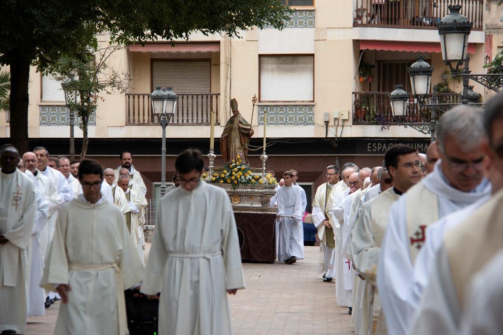 A las 11 de la mañana de este 10 de octubre, se iniciaba la eucaristía en la catedral y salía en procesión la imagen de santo Tomás de Villanueva, en el día de la celebración de su solemnidad.