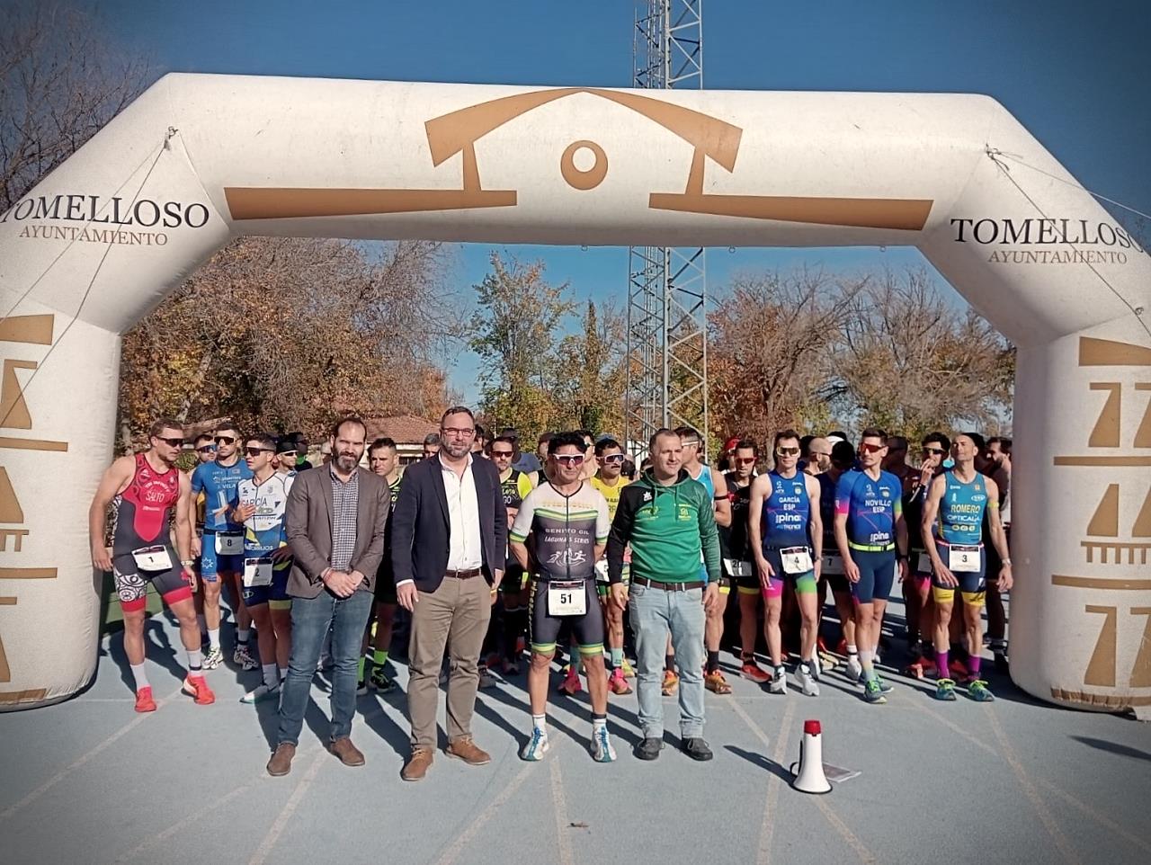 En una mañana ideal para la práctica del deporte, ciento un atletas están participando en la sexta edición del Ducross Miguel Ángel Moreno. Se trata de la tercera prueba puntuable del circuito de duatlón y triatlón Lagunas Series 2024. El alcalde de Tomelloso, Javier Navarro y el concejal de Deporte, Benjamín de Sebastián, ha dado la salida a las 11 de la mañana a un acontecimiento deportivo en el que participan una veintena de mujeres.