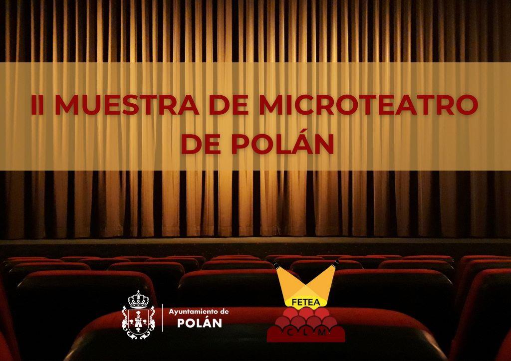 La Federación de grupos aficionados de teatro de Castilla La Mancha (FETEACLM), con la colaboración y patrocinio de la Concejalía de Cultura del Ayuntamiento de Polán y la colaboración de la Confederación Nacional Escenamateur, convoca por segundo año consecutivo la II Muestra “Microteatro en Polán” con el objetivo de promocionar la cultura y el turismo en el municipio y potenciar el teatro por los grupos aficionados castellano-manchegos.