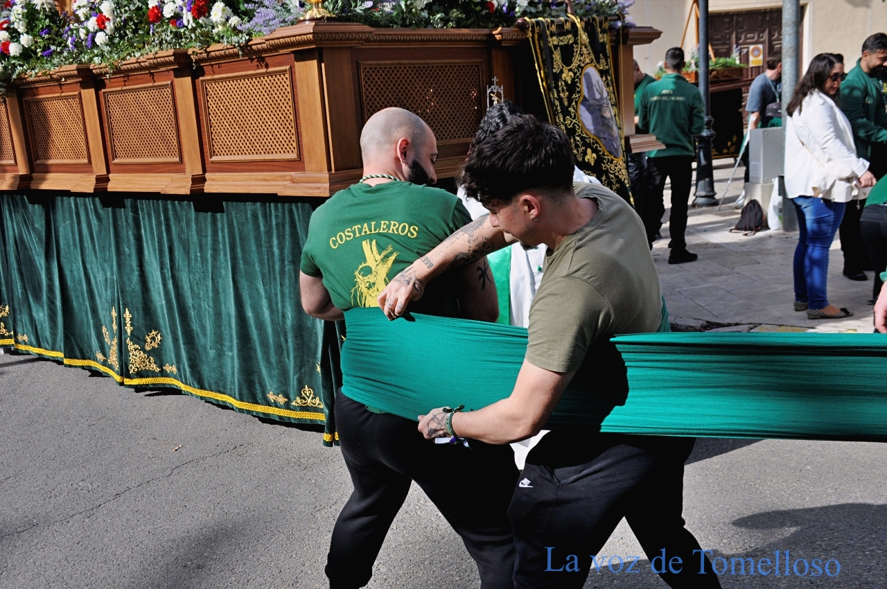 Santo recorren las calles de Tomelloso con su paso titular portado a costal. La