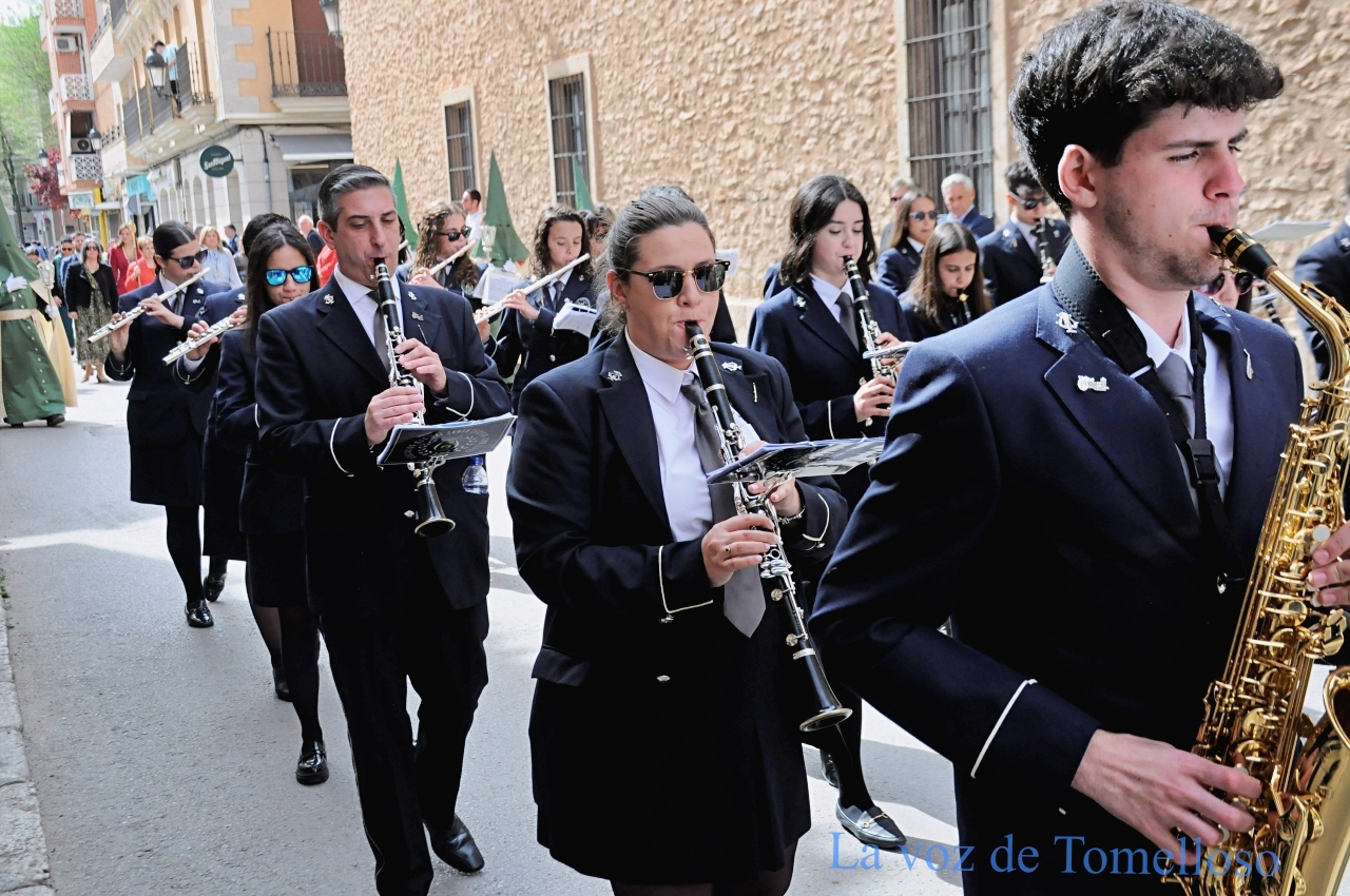 penitentes de verde y beige. La banda de la Asociación Santa Cecilia de