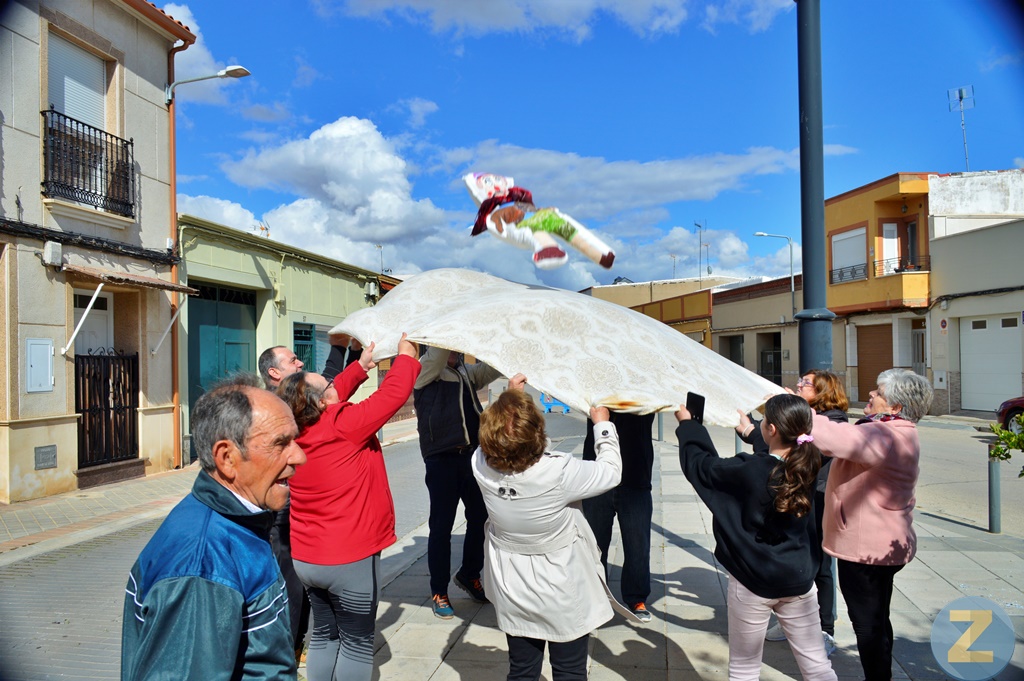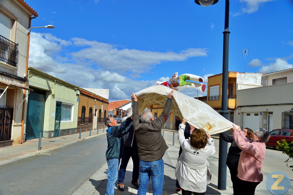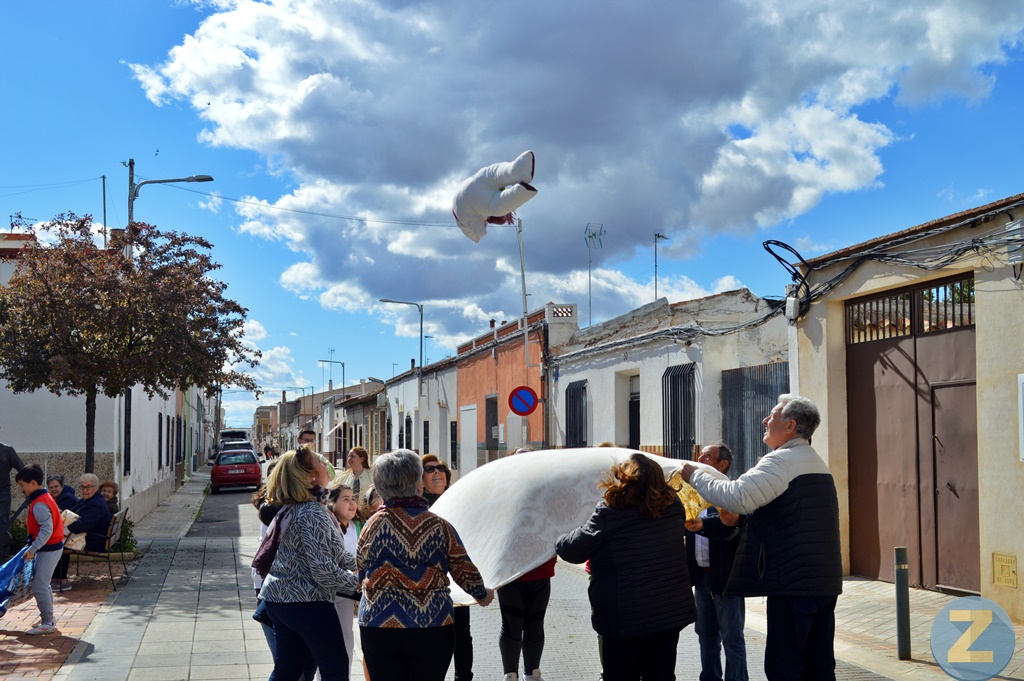 El Barrio del Moral ha celebrado este domingo la fiesta del Manteo del Pelele, una tradición que viene de lejos en esta popular barriada de Tomelloso. Los vecinos del barrio, con mayoría de mujeres, se han divertido con esta antiquísima costumbre que se celebra en el Domingo de Resurrección.