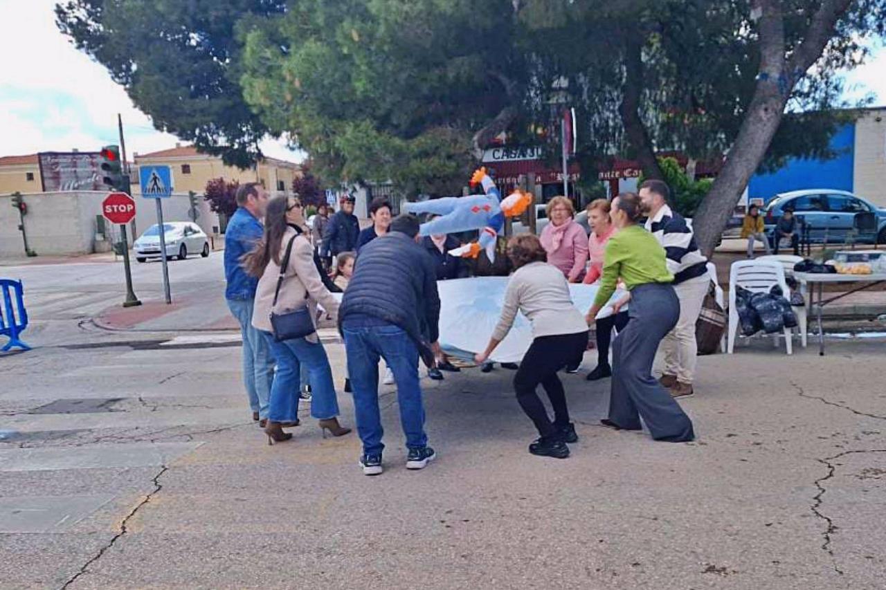 tradición muy manchega. No faltaron al manteo de los peleles el alcalde de