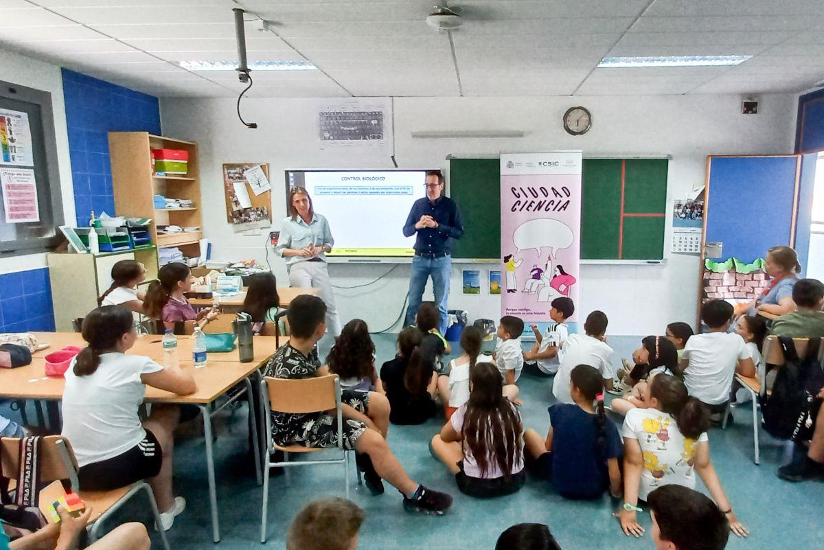 El CEIP José María del Moral ha celebrado este lunes una interesante charla titulada “¿Por qué enferman los cultivos? Conoce las interacciones entre planta-patógeno e insecto”, impartida por la doctora Aránzazu Moreno, científica titular del Instituto de Ciencias Agrarias del Consejo Superior de Investigaciones Científicas (CSIC). La actividad se enmarca dentro del proyecto “Ciudad Ciencia”, una iniciativa de divulgación científica promovida por el CSIC y el Ayuntamiento de Tomelloso, cuyo objetivo es acercar la ciencia y la tecnología a la ciudadanía en el entorno local.