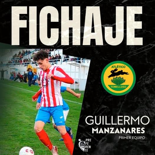 El Atlético Tomelloso ha fichado a Guillermo, mediocentro de altura, con gran capacidad de asociación, pausa y equilibrio. Conocido ya por la afición tomellosera por defender los colores auriverdes en el Juvenil Nacional, Guillermo procede del Cristo de la Vega. Antes militó también en equipos como Pedroñeras y Quintanar de la Orden donde ofreció un buen rendimiento.