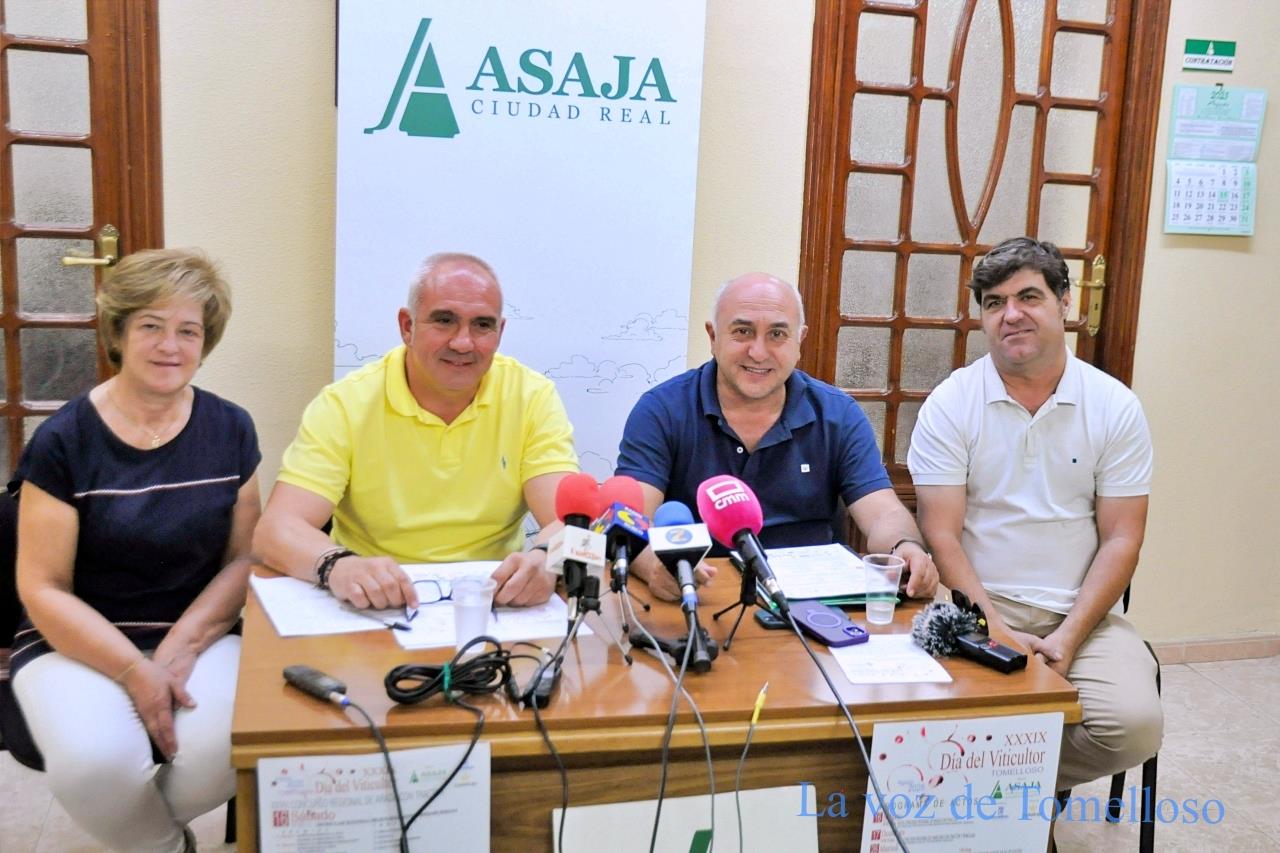 Este martes ha tenido lugar la presentación de la 39 edición del Día de Viticultor que ASAJA celebrará el martes 26 de agosto, coincidiendo con las ferias y fiestas en honor de la Virgen de las Viñas. ASAJA contará con la colaboración del Ayuntamiento de Tomelloso y el patrocinio de Globalcaja para desarrollar una extensa programación de actividades.