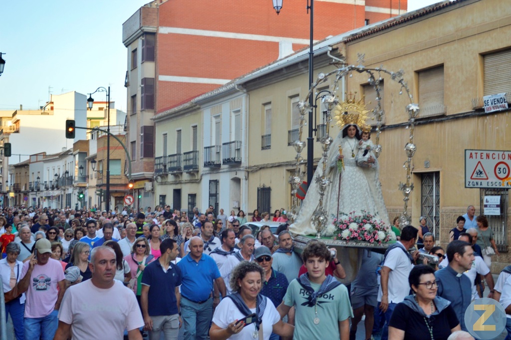 Veintidós días después de su llegada a Tomelloso para ser el centro de intensos momentos en las Ferias y Fiestas de las ciudad, la imagen de la Virgen de las Viñas regresaba este domingo al Santuario de Pinilla. Acompañada de más de un millar de devotos, a las ocho en punto de la mañana, la Virgen salía de la Iglesia de La Asunción de Nuestra Señora en medio de un prolongado aplauso. Le esperaba un hermoso camino de peregrinación de hora y media en una agradable mañana que invitaba a mezclar la devoción religiosa con el sano ejercicio.