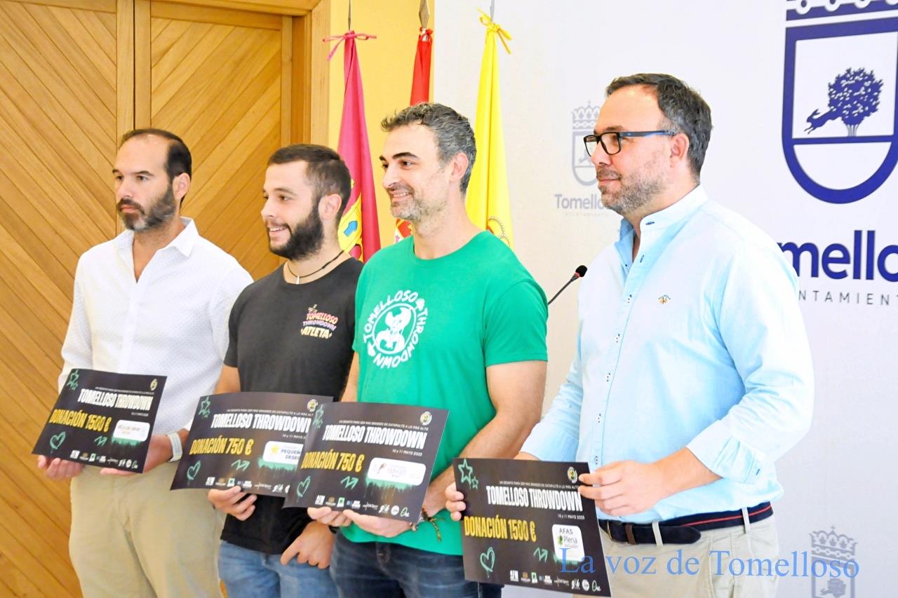 El Tomelloso Throwdown más solidario ya está con los preparativos de la quinta edición que aspira a superar los niveles de participación del año pasado. Este miércoles se ha dado carpetazo a la cuarta edición con el anuncio de las cantidades que recibirán cuatro entidades sociales en una rueda de prensa en la que han estado presentes el alcalde, Javier Navarro; el concejal de Deportes, Benjamín de Sebastián y el representante de la organización, Javier Blanco.