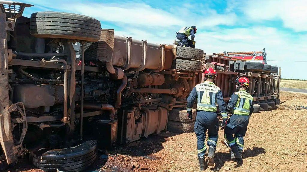 Bomberos de Tomelloso, en el vuelco de un camión en Cinco Casas / SCIS