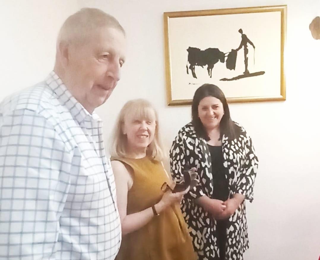 Como explicó el secretario de la asociación durante la cena, Alfonso López Oliva, "en la asamblea de la Asociación del pasado 15 de julio se decidió nombrar a Sonia García Soubriet socia de honor por su valiosa ayuda y colaboración en el libro sobre las Cuevas de Tomelloso que publicó José María Díaz, y por su vinculación con las cuevas y la asociación". Sonia García Soubriet agradeció el gesto y aseguró que "compartir esos momentos con José María y haber podido saber tantas cosas sobre las cuevas, por las que mi padre ya sentía gran admiración. Ha sido un verdadero regalo para mí". El nombramiento se materializó en un bello obsequio de plata.
